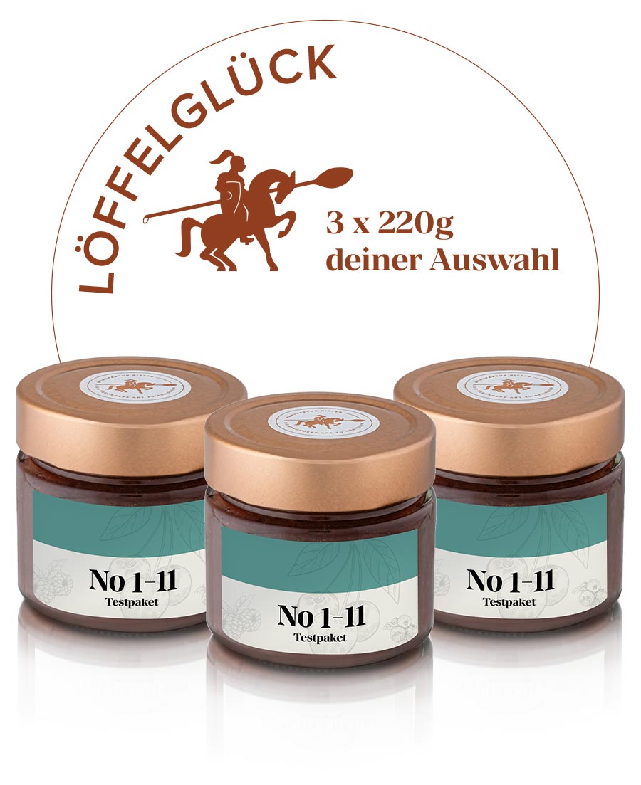 Drei Gläser purer Fruchtgenuss – handgerührt im Kupferkessel, mit bis zu 75 % Fruchtanteil. Wähle deine drei Lieblingssorten und entdecke, was ehrliche Handarbeit wirklich bedeutet. Ideal zum Verschenken oder Selbstvernaschen.